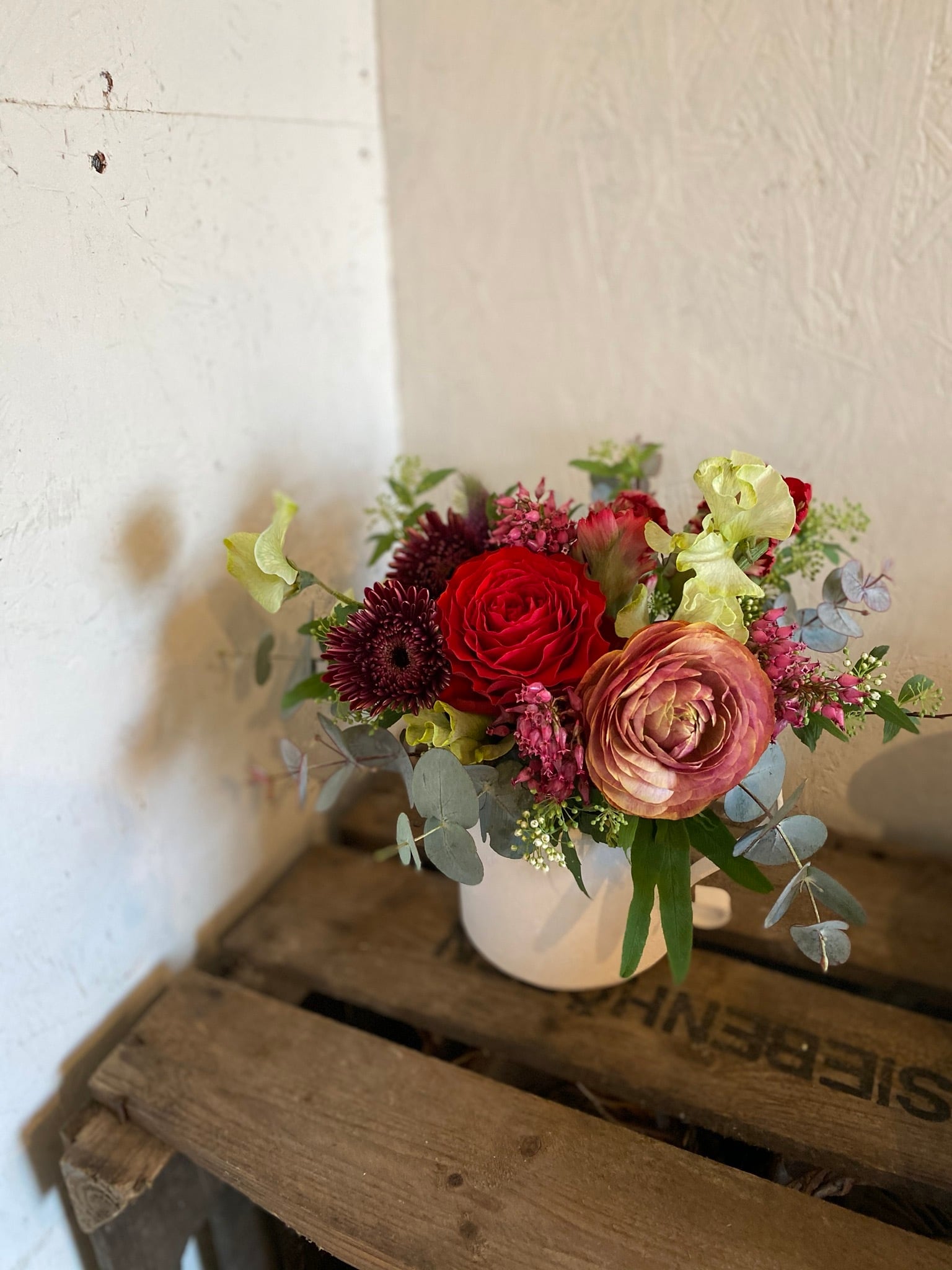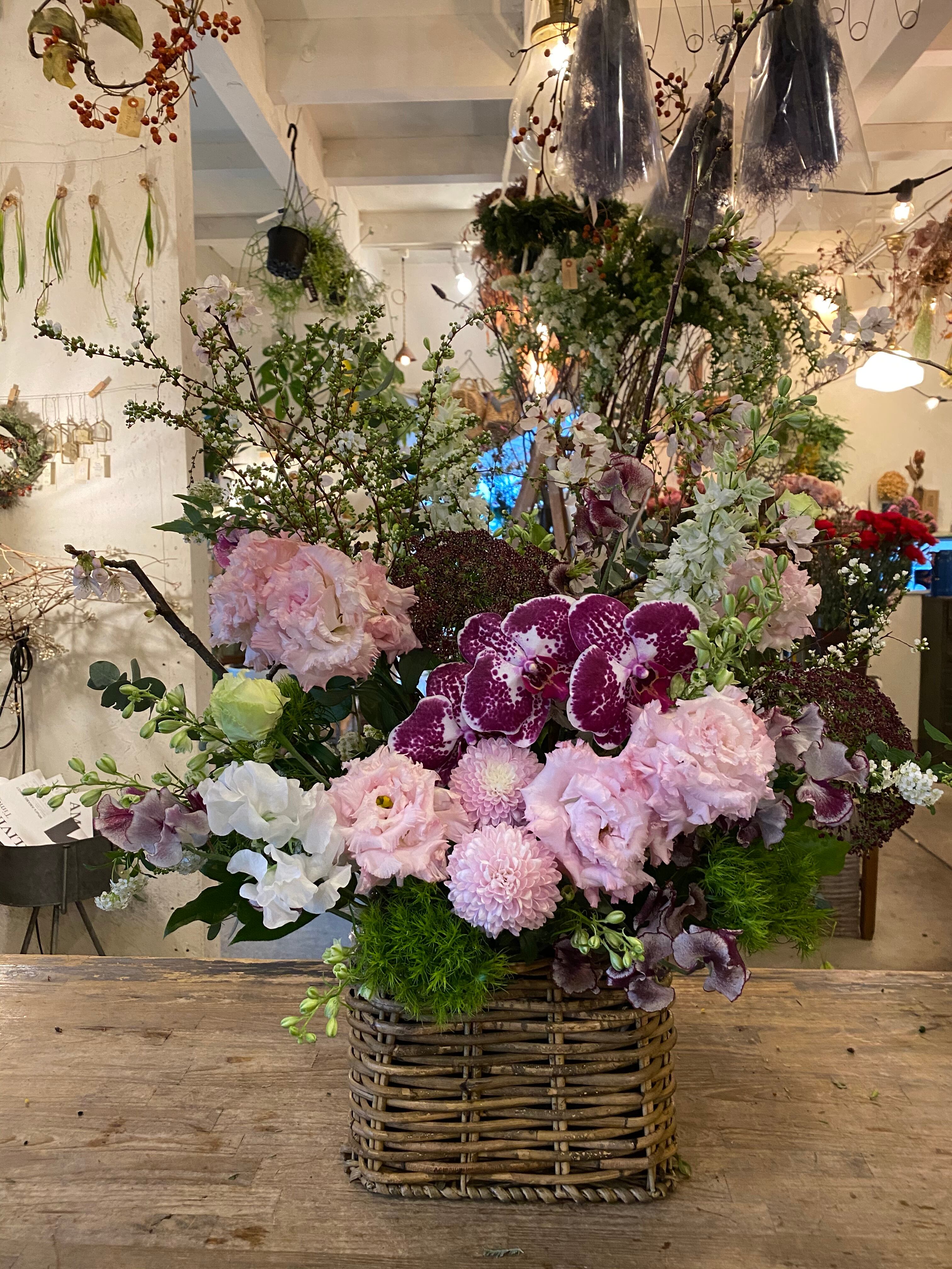(写真は過去に作成したアレンジメントの一部であり、お花は季節、入荷、選択の雰囲気に合わせてセレクトさせていただきます)