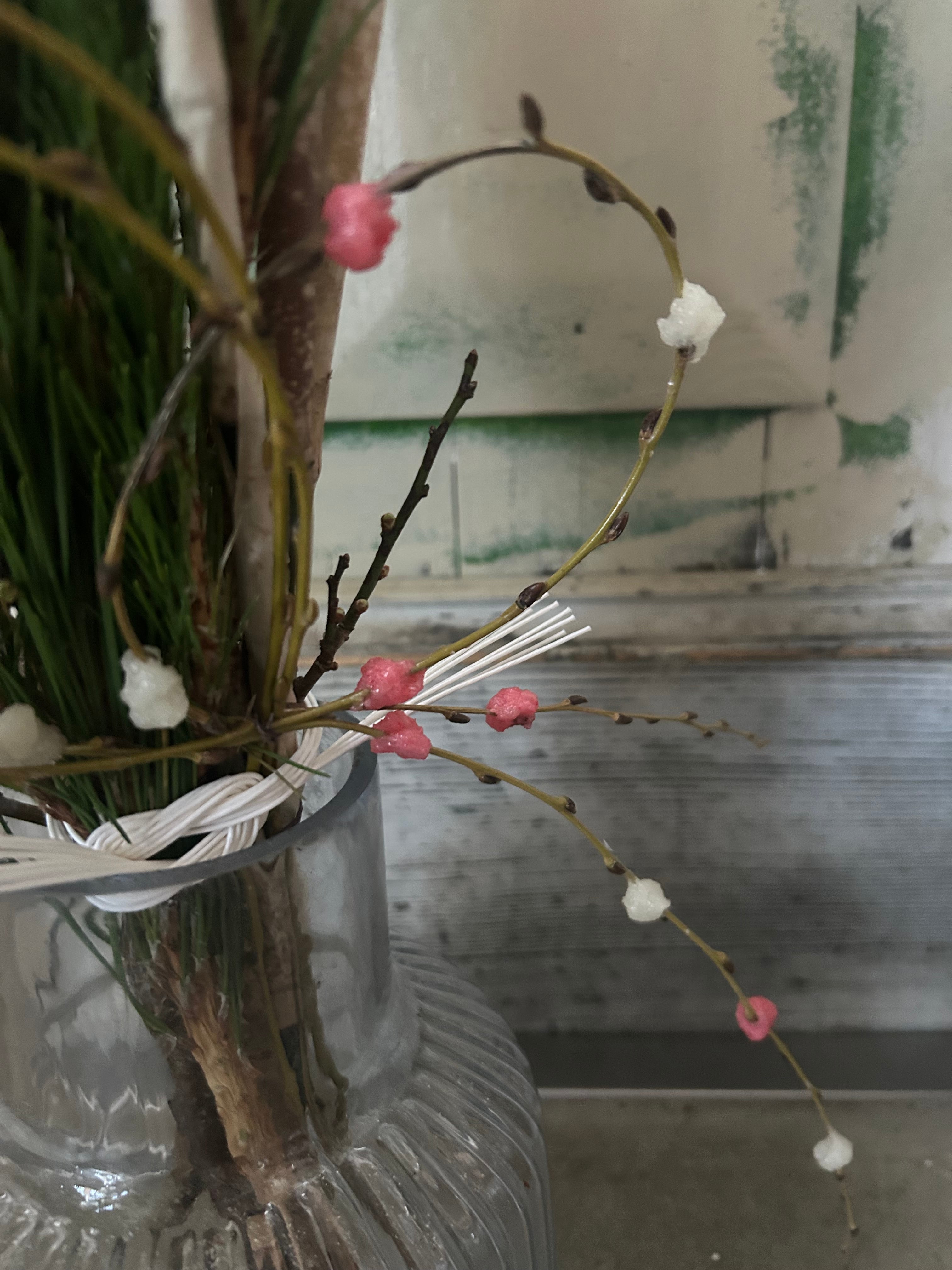 こちらはクリスマスの終わった同じ花瓶を使って飾ることができます